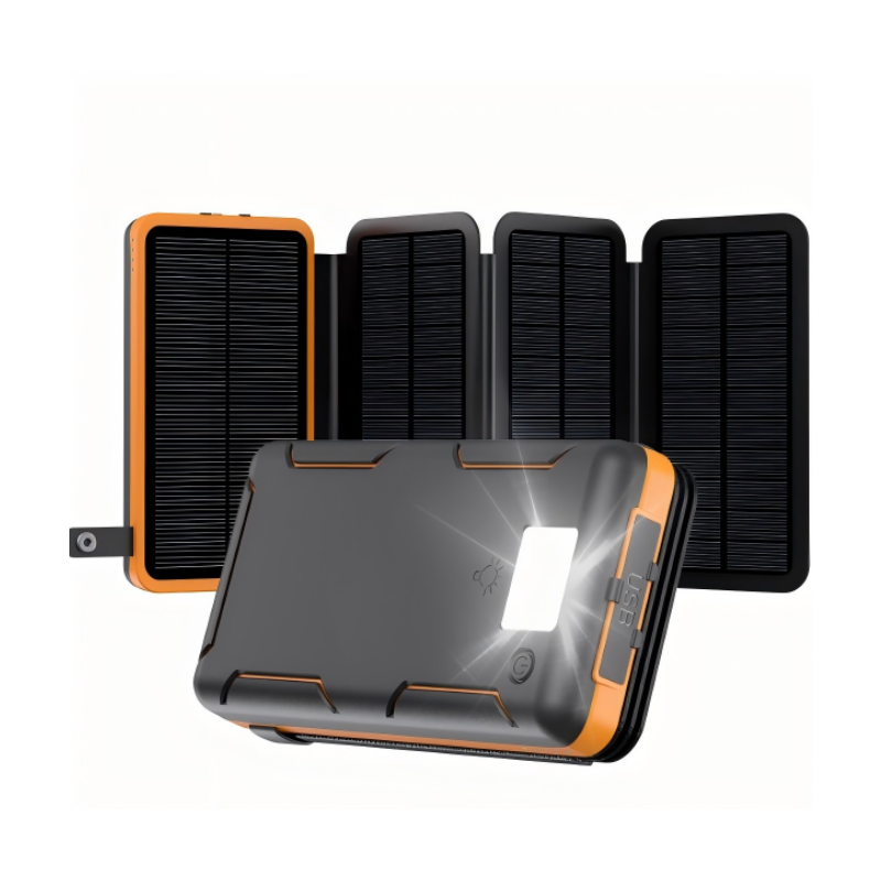 The foldable solar panel power bank combines a high-efficiency solar panel with a mobile power source, charging itself and devices through sunlight. It is a green and portable energy solution for outdoor travel and emergency preparedness.